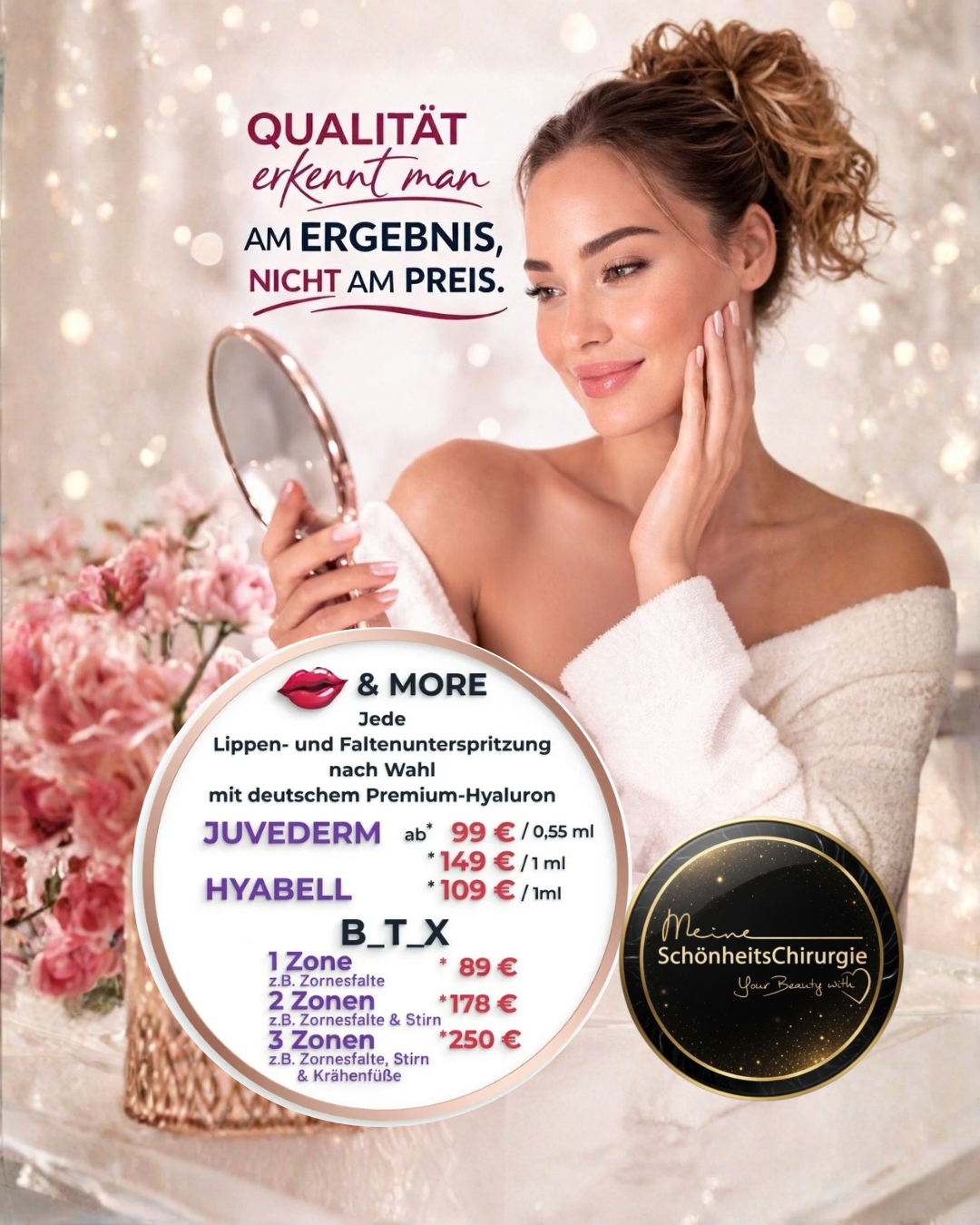 | Mit deutschem Premium Hyaluron Hyabell: | ab* 109€/ ml |